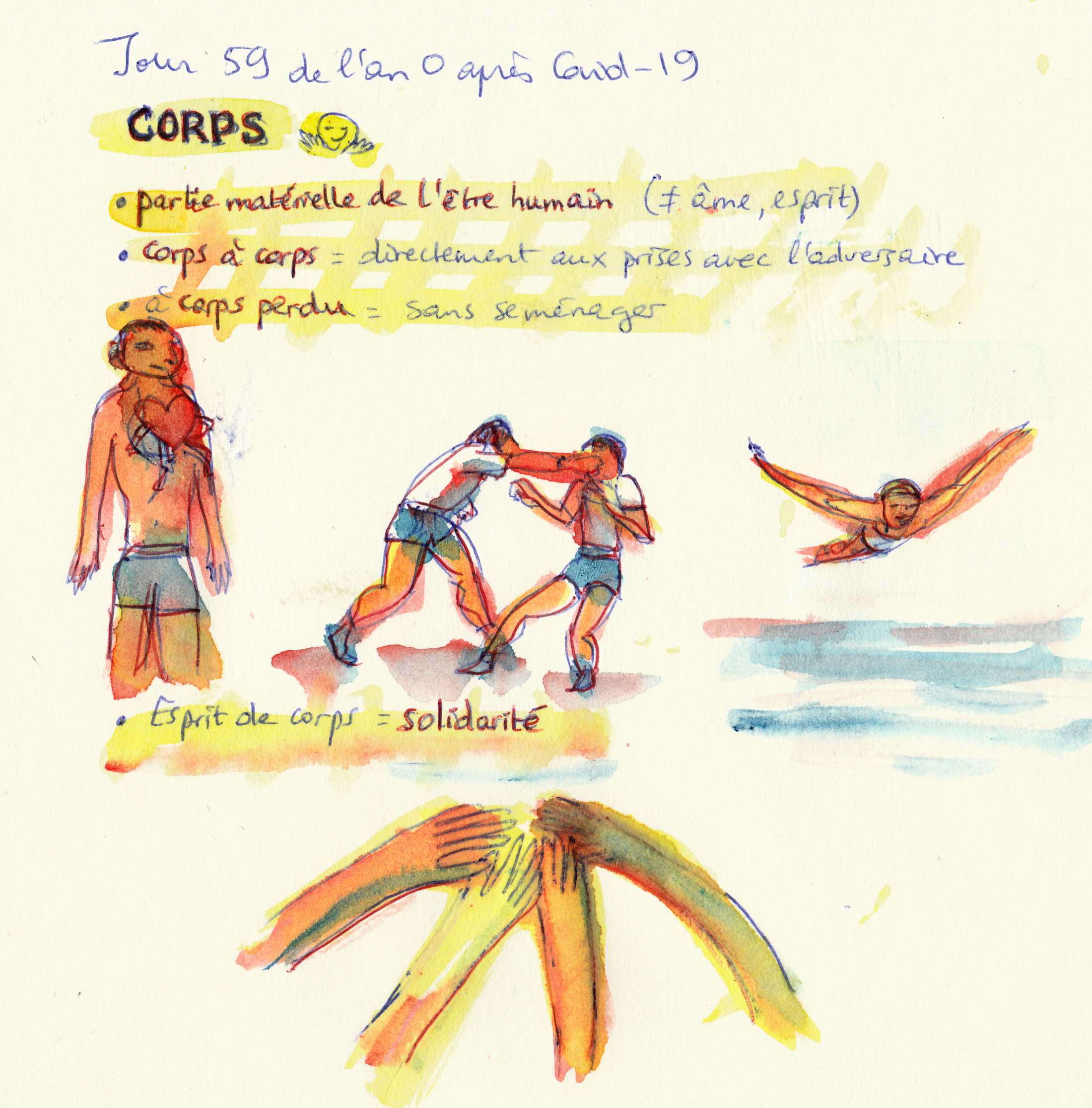 Durant le confinement -19 mars 2020 / 22 mai 2020- j’ai fait un dessin par jour que je publiais sur les réseaux.